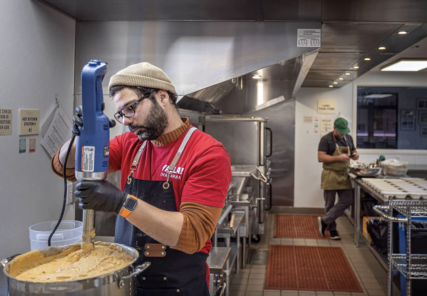 Zakaria Belghiti preparing the signature Yalla! Hummus.